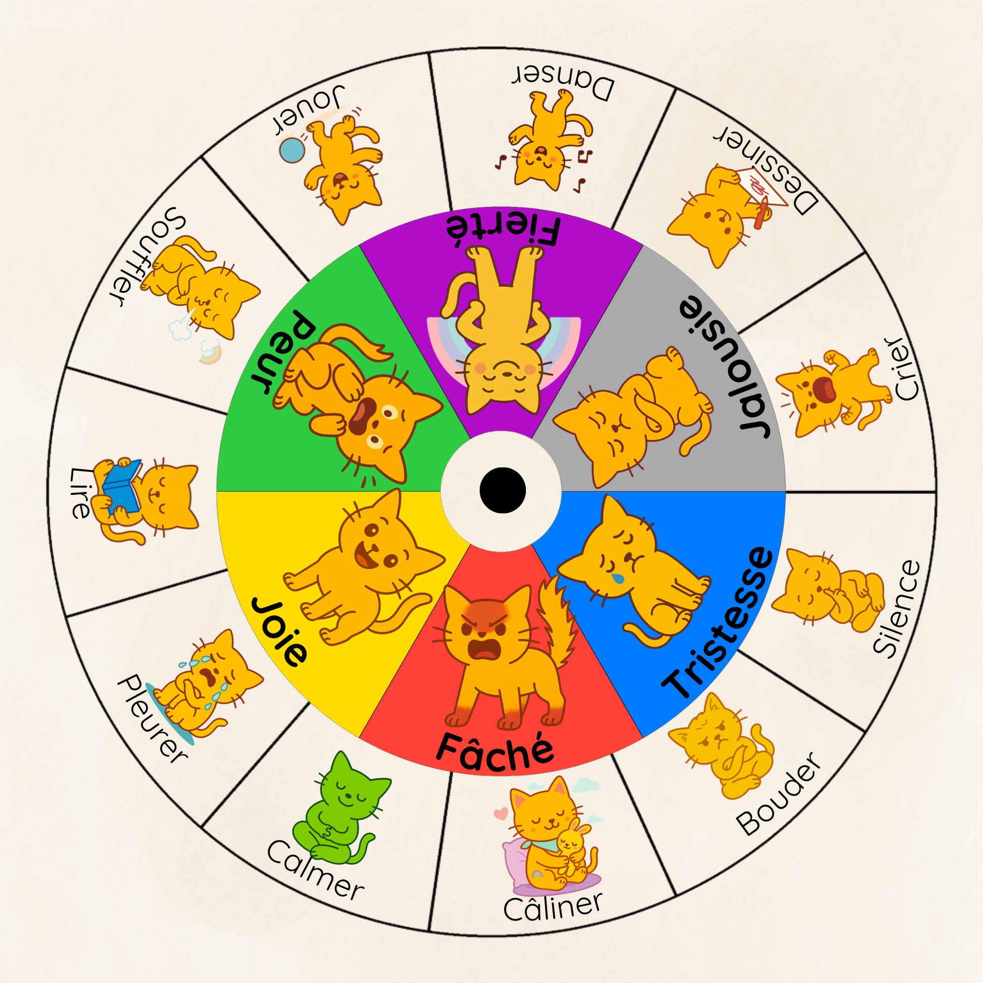 La Roue des Émotions est là pour l’aider à mettre des mots sur ce qu’il ressent, et surtout… à trouver seul une solution pour aller mieux.
